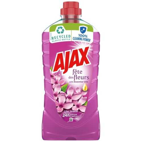 Ajax za podove je pouzdano sredstvo za čišćenje koje kombinuje snagu uklanjanja prljavštine sa prijatnim i dugotrajnim mirisima. Namenjen je za sve vrste podnih površina – od pločica, laminata, parketa (lakiranih), pa sve do mermera i linoleuma. Njegova formulacija omogućava lako uklanjanje tvrdokornih mrlja, masnoće i svakodnevne nečistoće bez potrebe za dodatnim ispiranjem. Zahvaljujući osvežavajućim mirisima poput limuna, lavande, morske svežine i cvetnih nota, Ajax za podove ostavlja prostor ne samo vizuelno čistim, već i prijatno mirisnim satima nakon čišćenja.