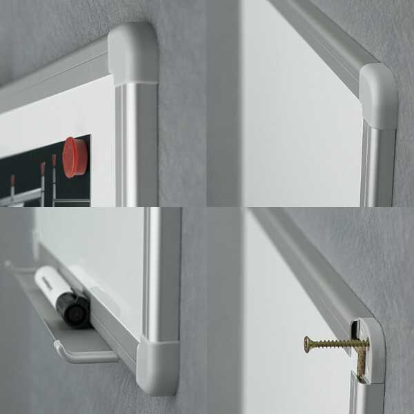 - Pakovanje sadrži set za montažu (šrafovi i tiplovi), 1x policu za markere, 1x Board marker (crni), 3x magneta (crvena)